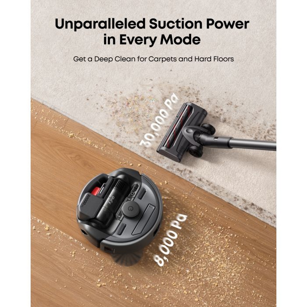 - 30,000 Pa Max Suction Power: Tackle dirt, dust, and debris with unparalleled suction power. Enjoy up to 30,000 Pa for handheld cleaning and 8,000 Pa in robot vacuum mode, ensuring deep, thorough cleaning on all surfaces—from carpets to hard floors.