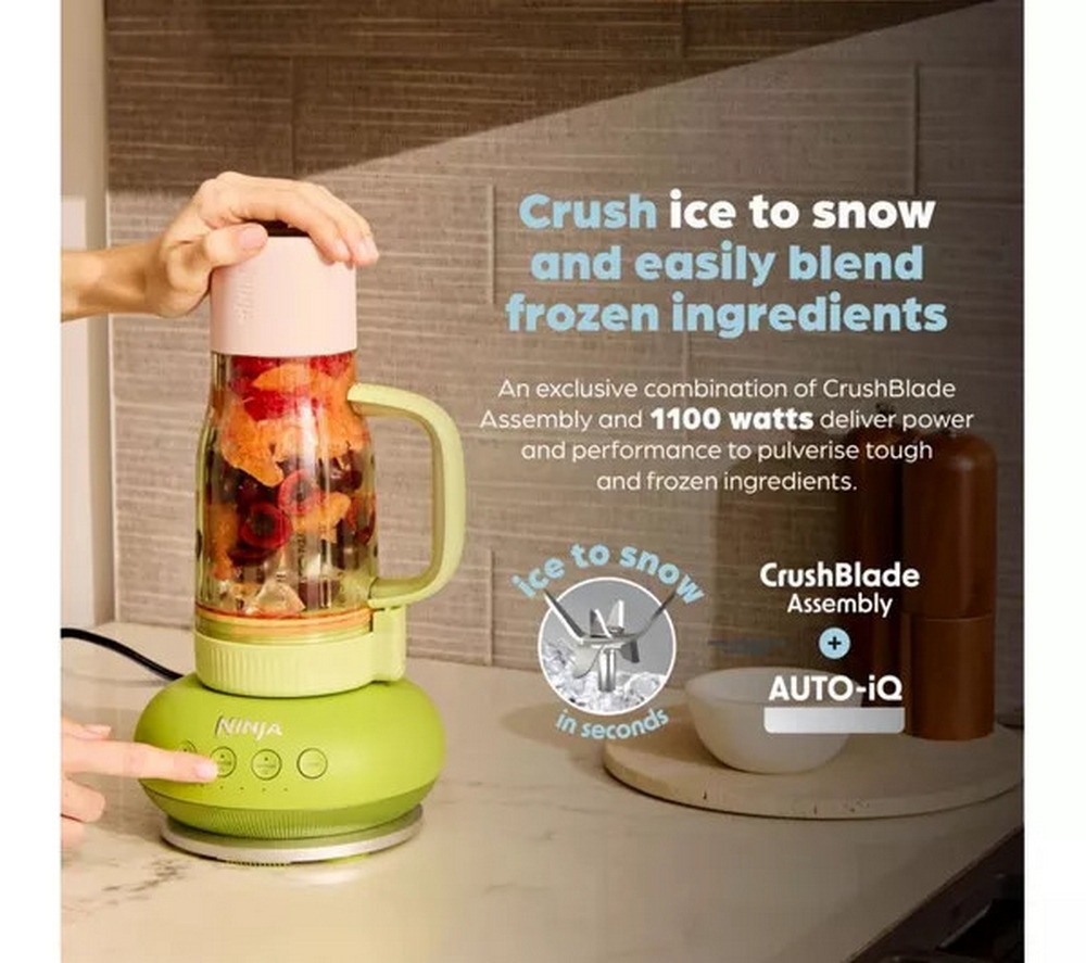 Explore a range of on-trend colours to suit your vibe. Perfect for small kitchens and shared living spaces, the blender features a leak-proof lid. Drink in two ways, with the spout or removeable straw. Powerful, ice-crushing blending: This personal single-serve blender packs a powerful 1100-watt motor which drives the sharp CrushBlades, pulverising ingredients in seconds.