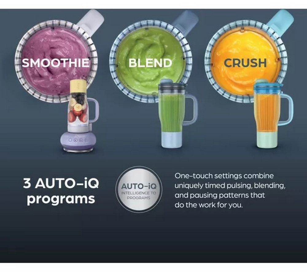 - Auto-iQ Technology: 3 auto presets – Smoothie, Blend & Crush, plus manual Pulse mode.