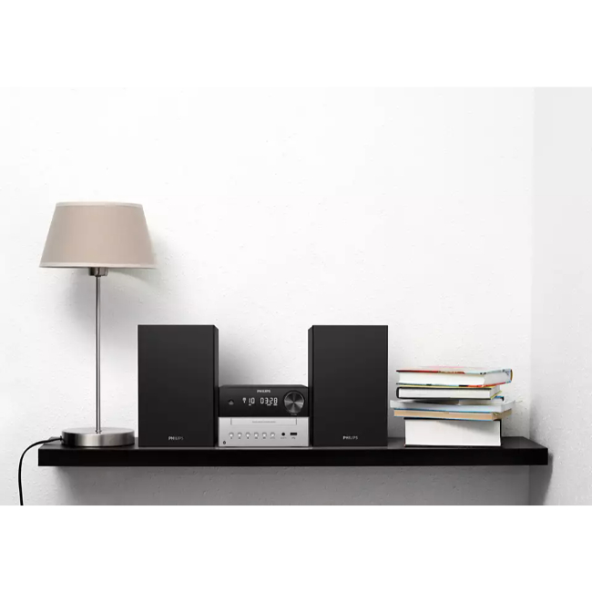 This stylish micro system lets you stream playlists and more via Bluetooth, play CDs and listen to FM radio. The digital radio tuner with 10 presets delivers clear reception, and the CD player can read MP3 CDs and recorded CDs.