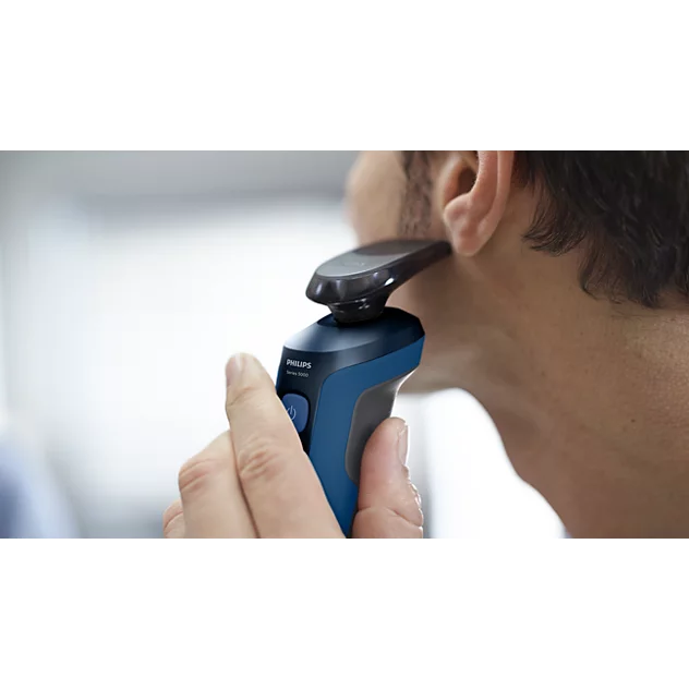 Fully flexible heads turn 360° to follow your facial contours. Experience optimal skin contact for a thorough and skin-friendly shave.