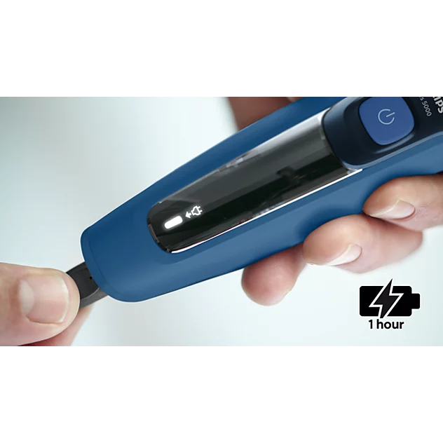 Fully charge your Philips shaver in just 1Â hour with the powerful and energy efficient lithium-ion battery. In a hurry? Plug in your shaver for 5Â minutes and get enough power for 1 full shave.