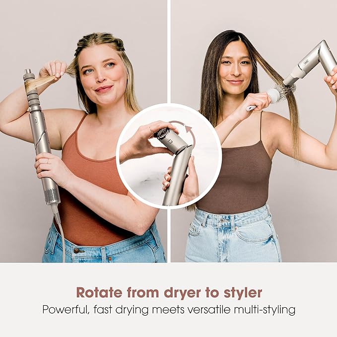 This sleek hair dryer and multi-styler may be lightweight and compact, but it’s packed with power, delivering fast performance – without the wait. Perfect for speeding up your morning routine. Rough dry without an attachment in hair dryer mode to quickly remove excess moisture from your hair, then click on an air styling attachment to achieve the look you love.