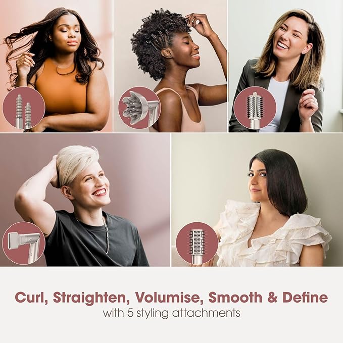 5 ways to style:Â Curl, Straighten, Volumise, Smooth, Define.